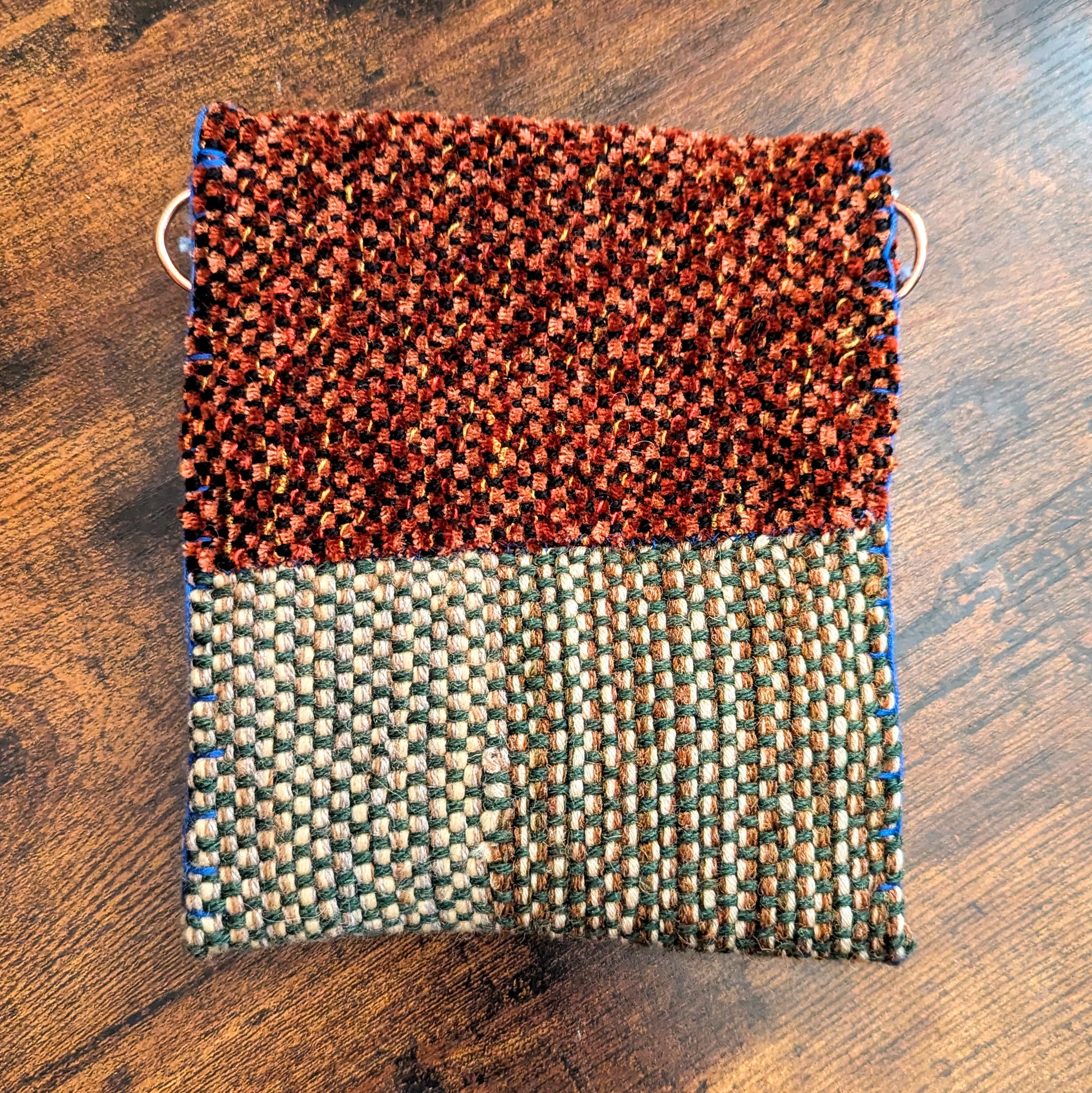 Handwoven burnt orange chenille and earthtone exterior, fern print flannel interior, a wooden button and metal snap will keep your tarot deck safe and secure as you travel between readings. Or if you don't have a tarot deck the rings on the side offer up adaptability as a clutch or handbag!