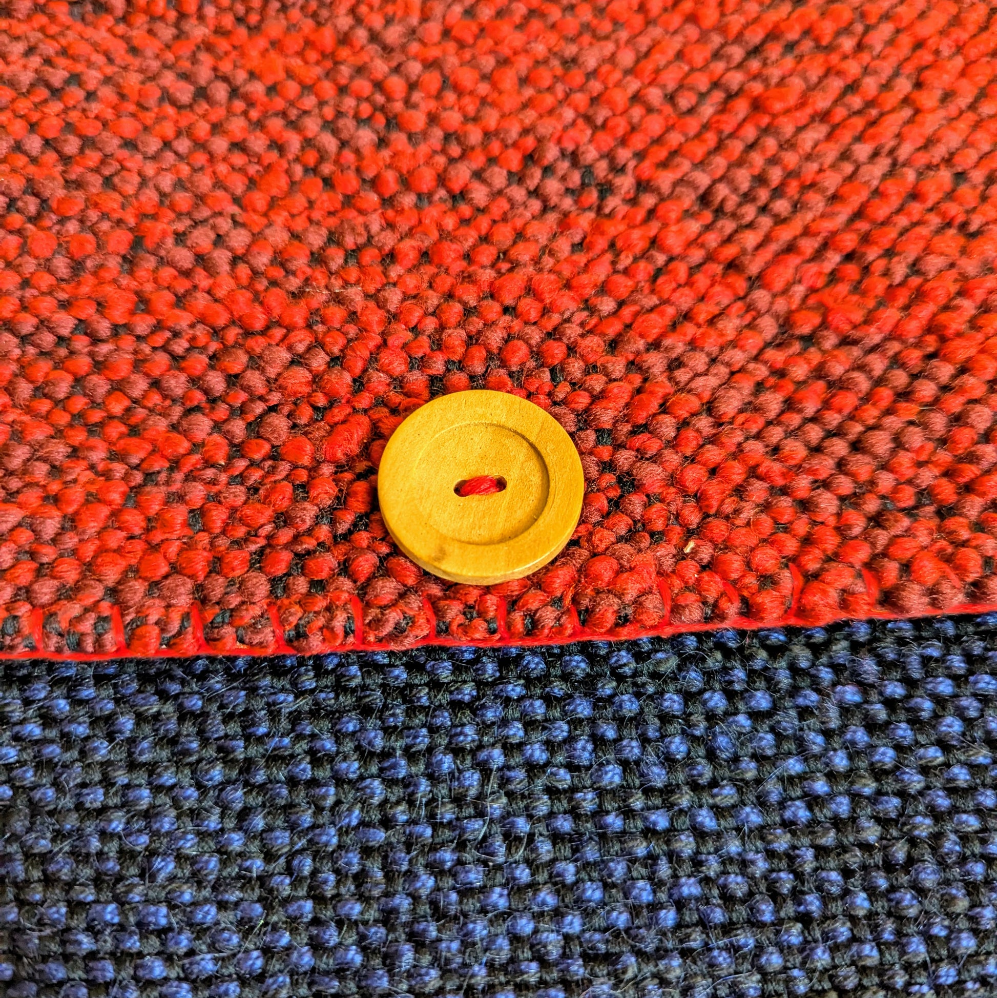 A variety of handwoven yarn brings to mind the depth of dragonscales with a lining of batik fiery flowers. These bags with their 360 degree swivel lobster clasp can transform into belt bags, handbags, saddle bags, and more!