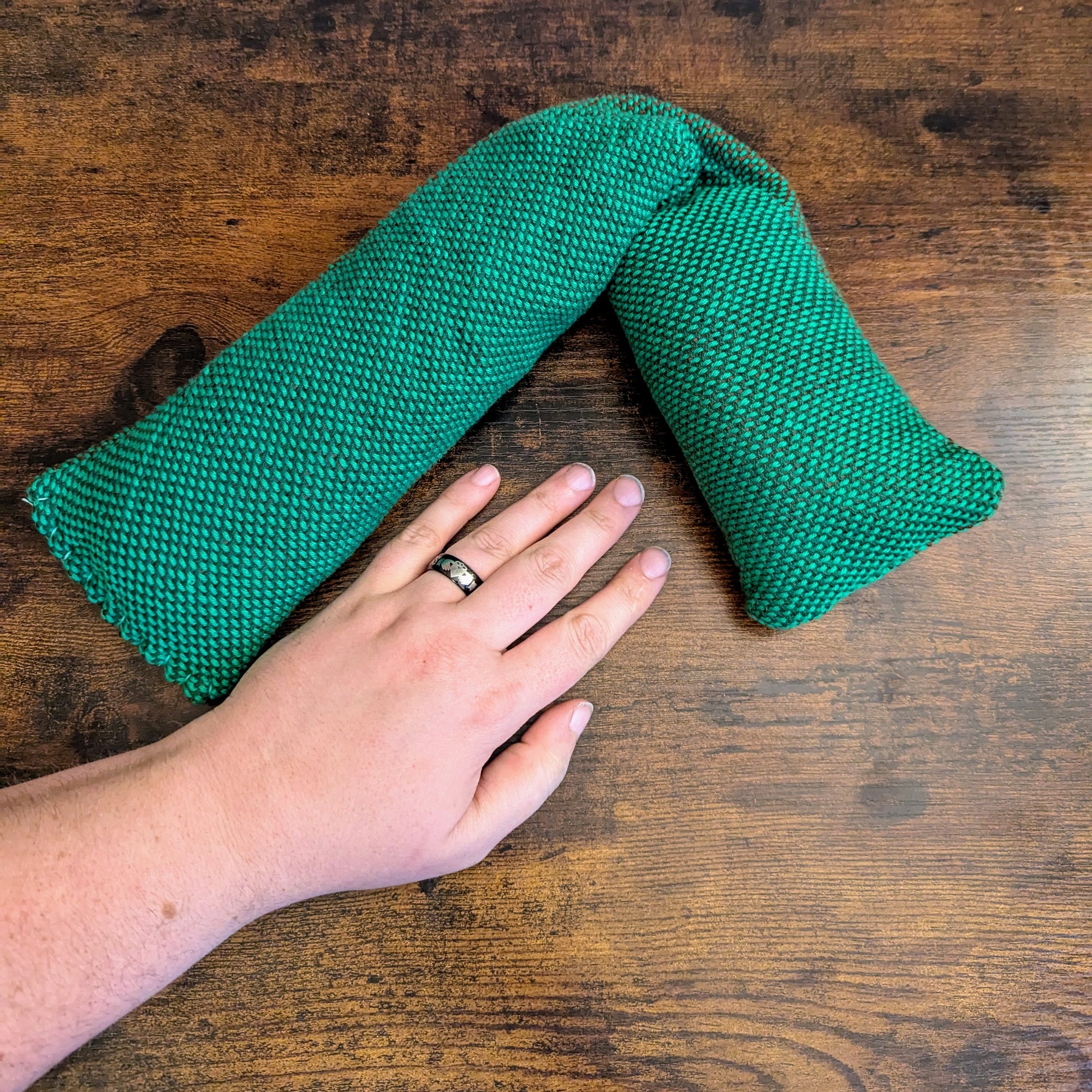 These Rice Packs are double layered with handwoven 100% cotton exteriors and upcycled flannel interior lining. Throw them in the microwave or the freezer for whatever sensory and healing your body needs! Adult hand for size reference, hand not included.