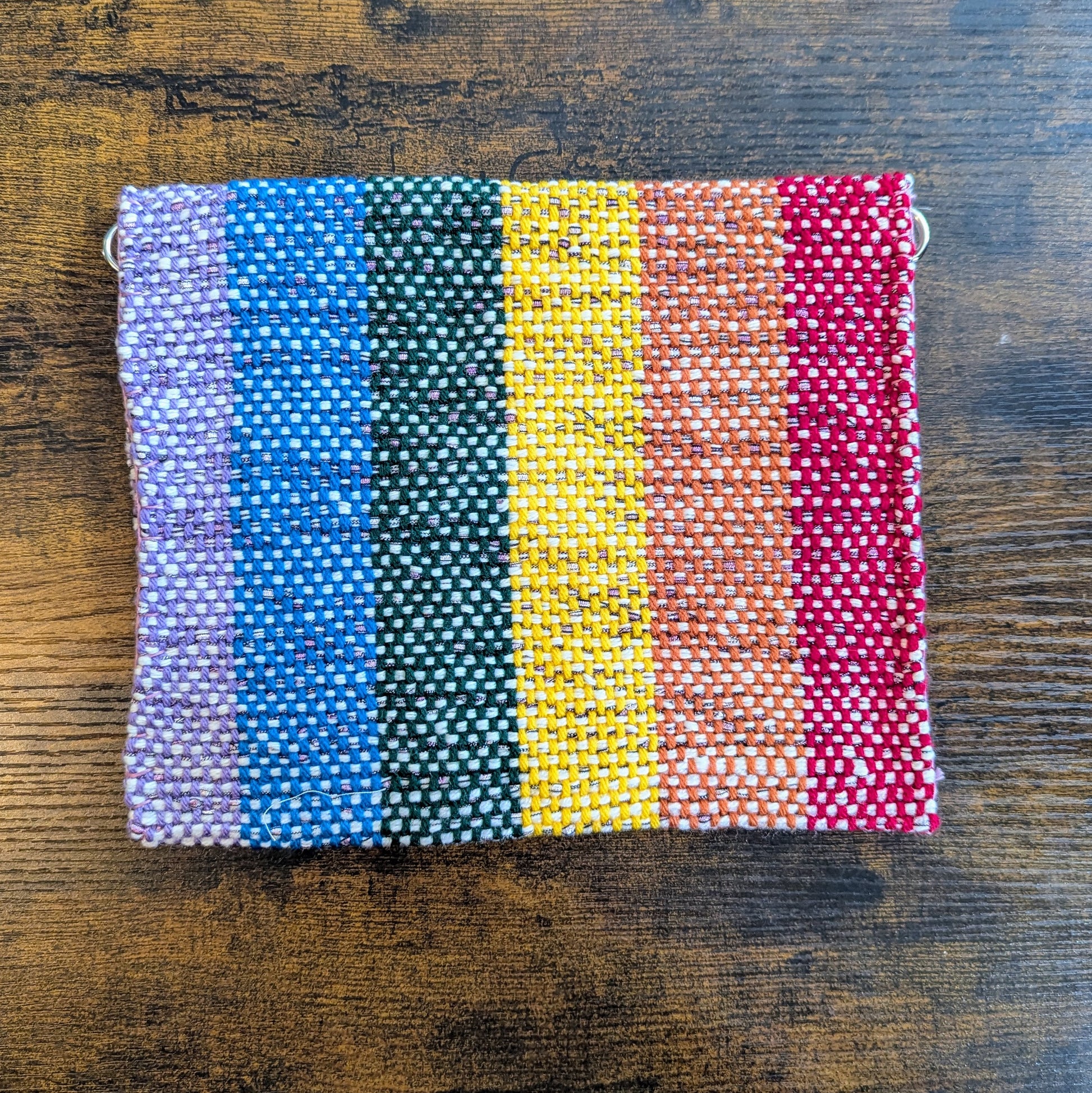 Versatile and in a variety of sizes, these handwoven rainbow bags are made of thrifted and secondhand materials with zero-waste! One large space with no pockets for things to get lost in, just grab and go!