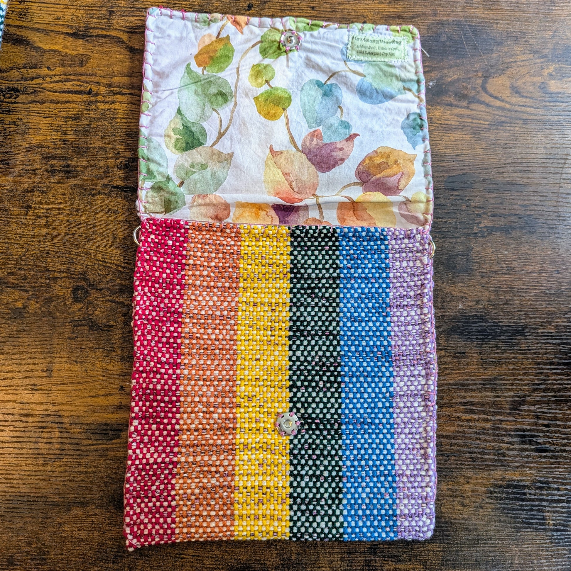 Versatile and in a variety of sizes, these handwoven rainbow bags are made of thrifted and secondhand materials with zero-waste! One large space with no pockets for things to get lost in, just grab and go!
